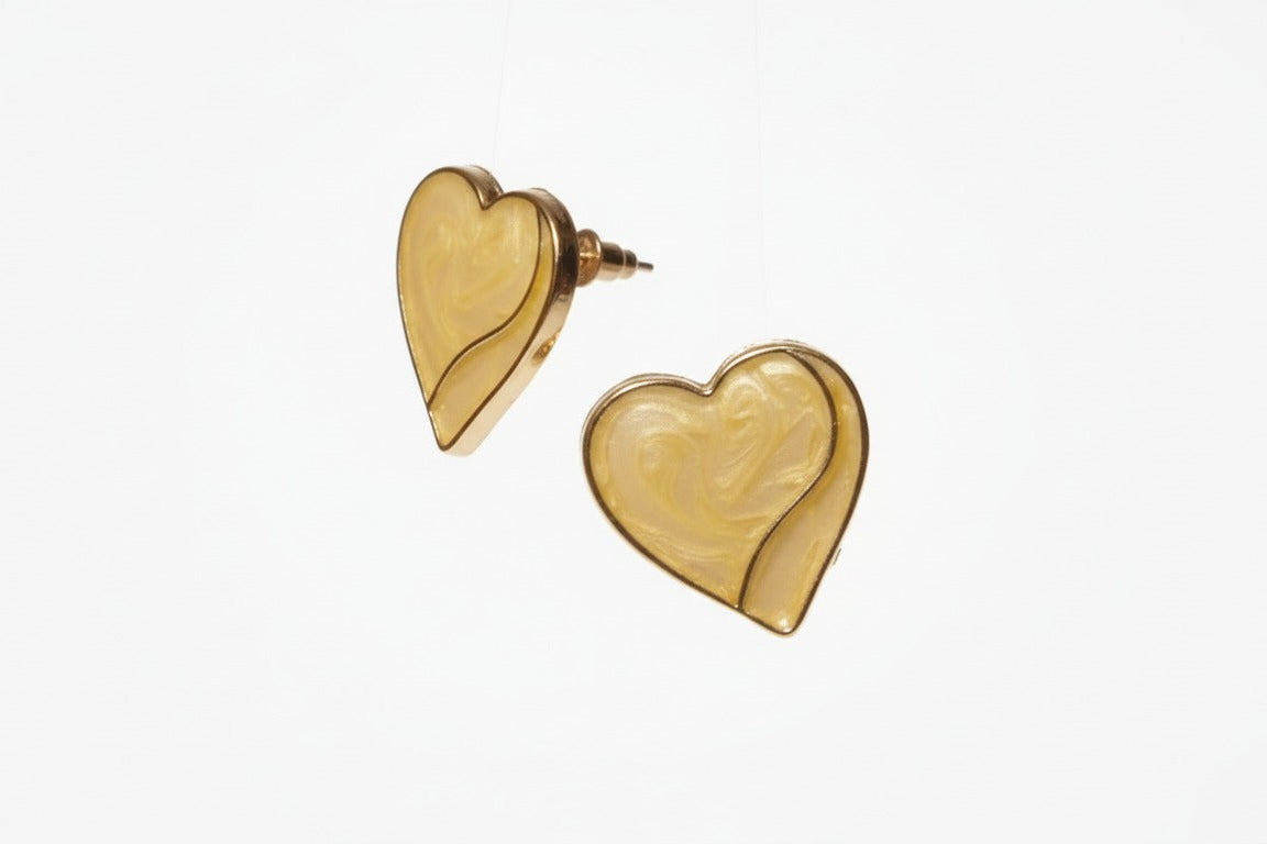 Studs en forma de corazón con acabado esmaltado efecto marmoleado en tono miel/dorado: dulces, luminosos y súper combinables para dar un toque delicado a cualquier look.