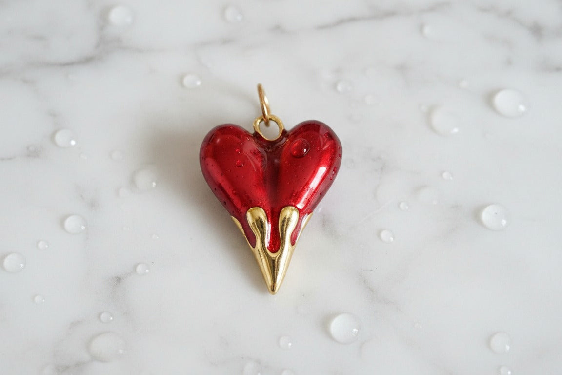 Corazón rojo de alto brillo con punta dorada: diseño expresivo y elegante que aporta color y significado a cualquier cadena. Una pieza versátil para el día o la noche. Luz que se nota, propósito que se siente.